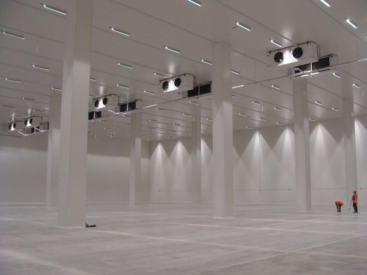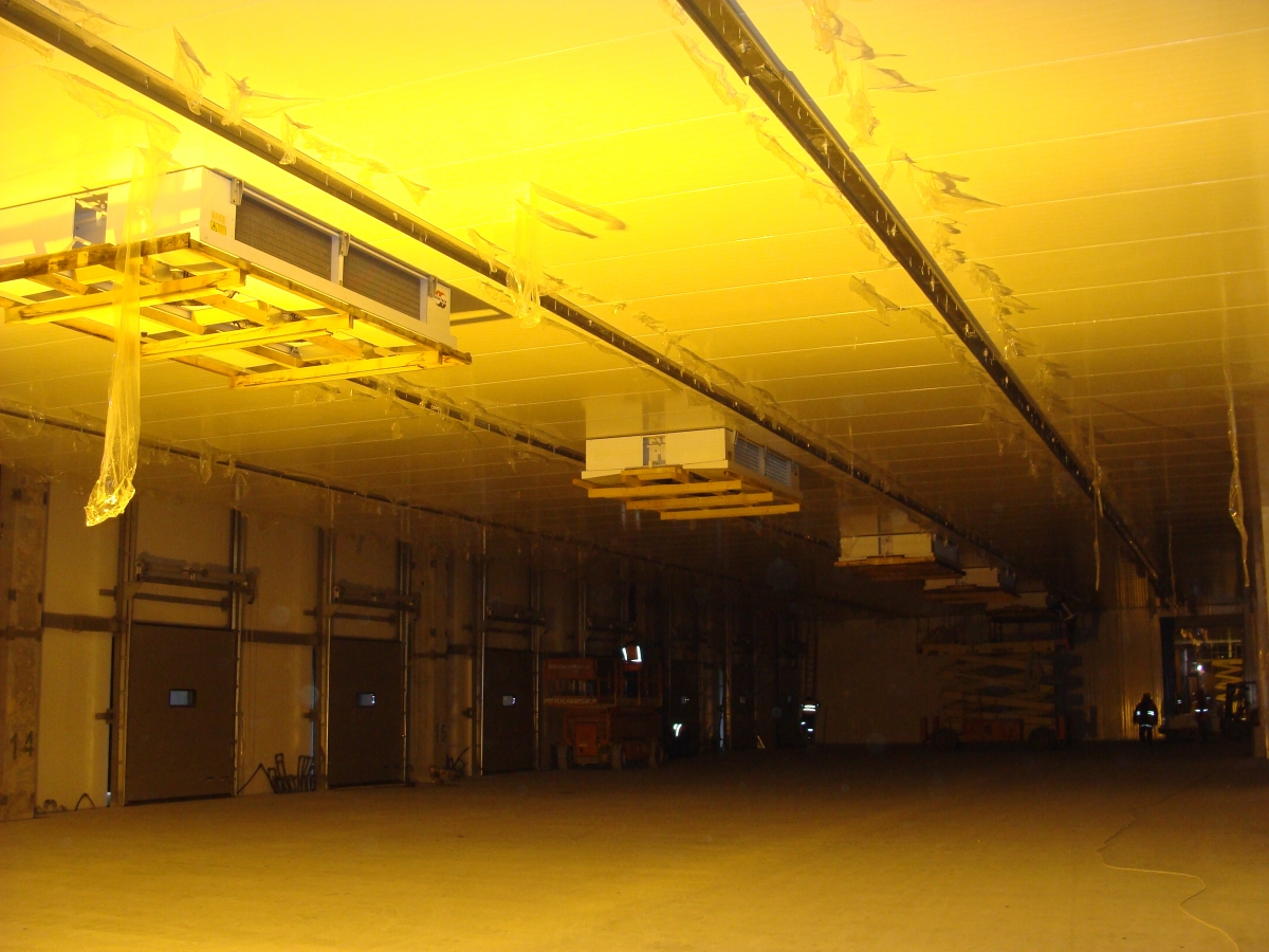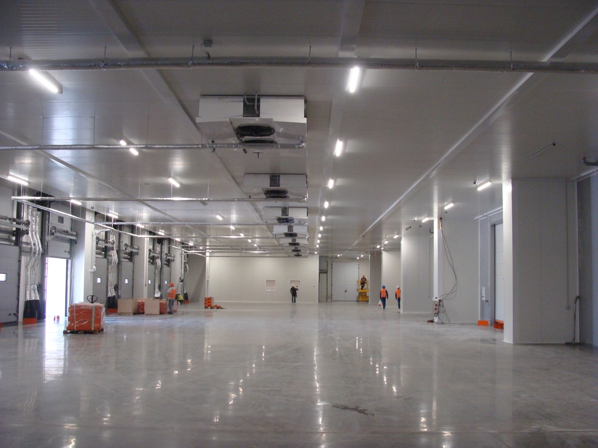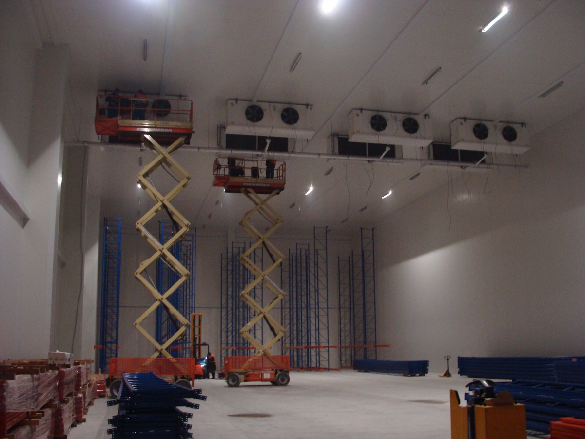 Подряд на поставку и монтаж системы холодоснабжения логистического комплекса, общей площадью 60 000 м2. Комбинированная система фреон R507A/пропиленгликоль/ СО2, суммарная холодильная мощность 12,9 МВт.