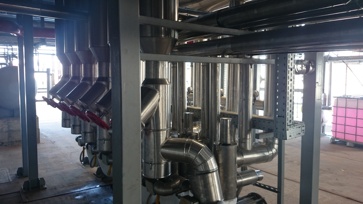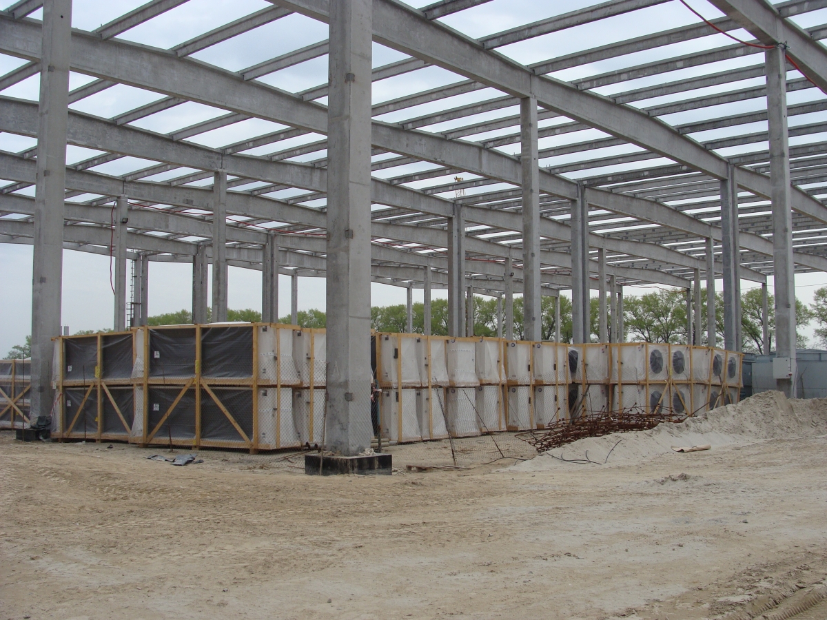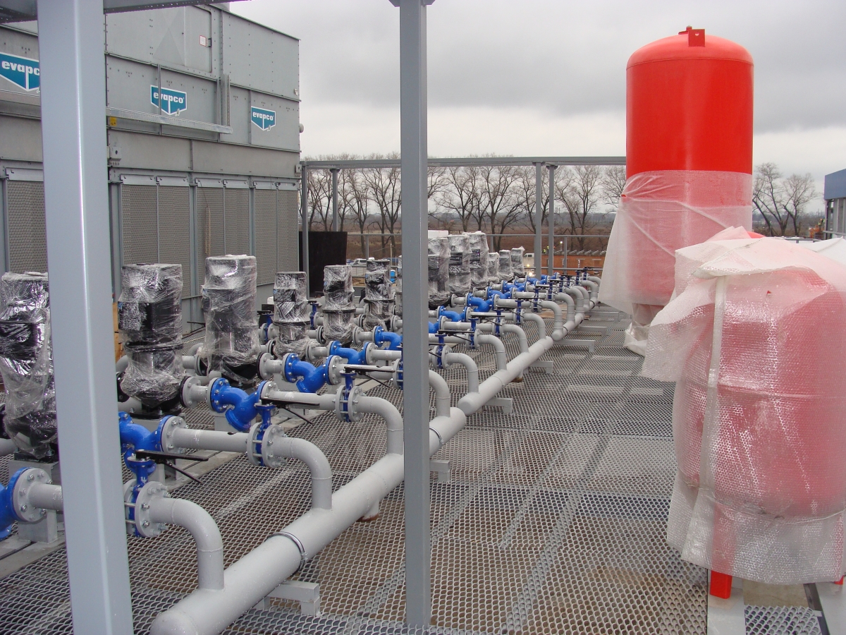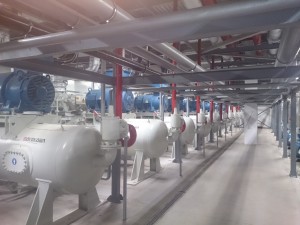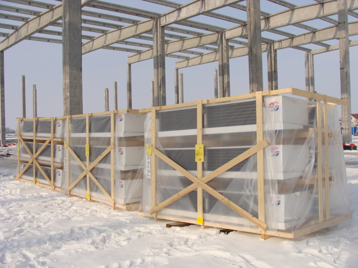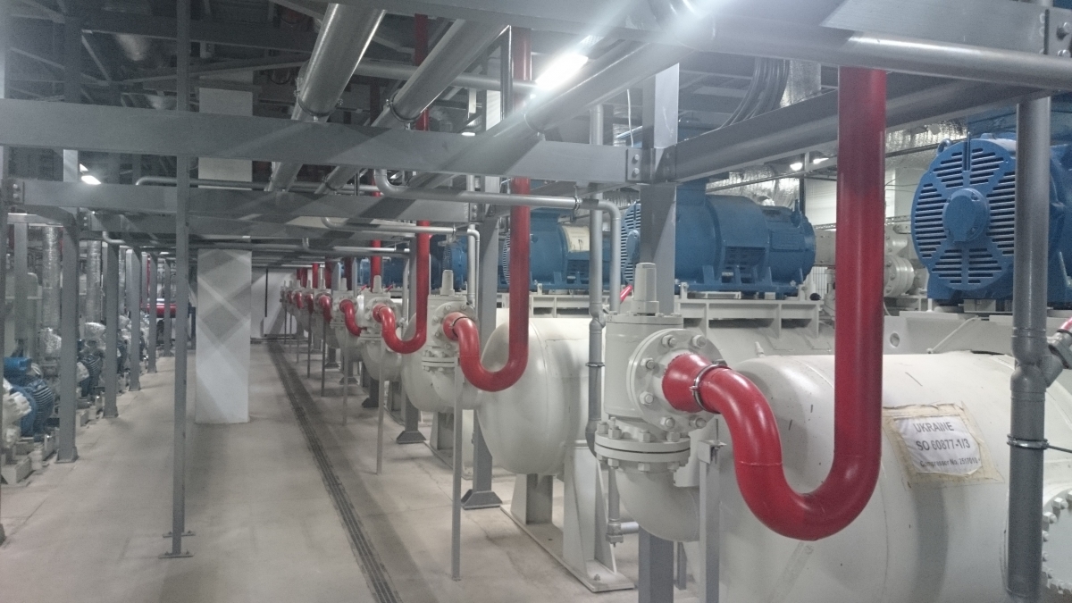 Подряд на поставку и монтаж системы холодоснабжения логистического комплекса, общей площадью 60 000 м2. Комбинированная система фреон R507A/пропиленгликоль/ СО2, суммарная холодильная мощность 12,9 МВт.