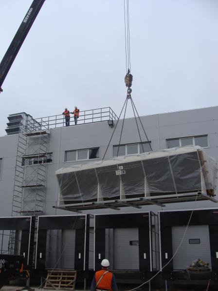 Подряд на поставку и монтаж системы холодоснабжения зоны охлаждения логистического комплекса, общей площадью 4 800 м2. Системы охлаждения на фреоне. Суммарная холодильная мощность 550 кВт.